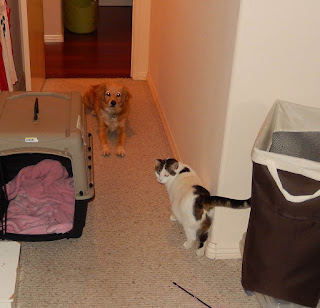 My cat will decide to lounge on the dog's bed in the dog's crate and the 80lb dog will stand outside her crate, looking at me, "What an I supposed to do? The cat's in there."