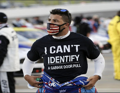 If you're not familiar with the story, Bubba said a noose was found in his garage at the NASCAR racetrack in Talladega, Alabama. The press did it's part and howled about Southern racism. No photo of the alleged "noose" was shown. In a sign of solidarity with NASCAR's only black driver, all of the drivers and pit crews of all of the other teams pushed Bubba's car around the track. #IStandWithBubba was marked in huge letter on the grass. NASCAR management made sure everyone knew they were going to make the racist villains pay. The FBI sent in no fewer than 15 agents to investigate.